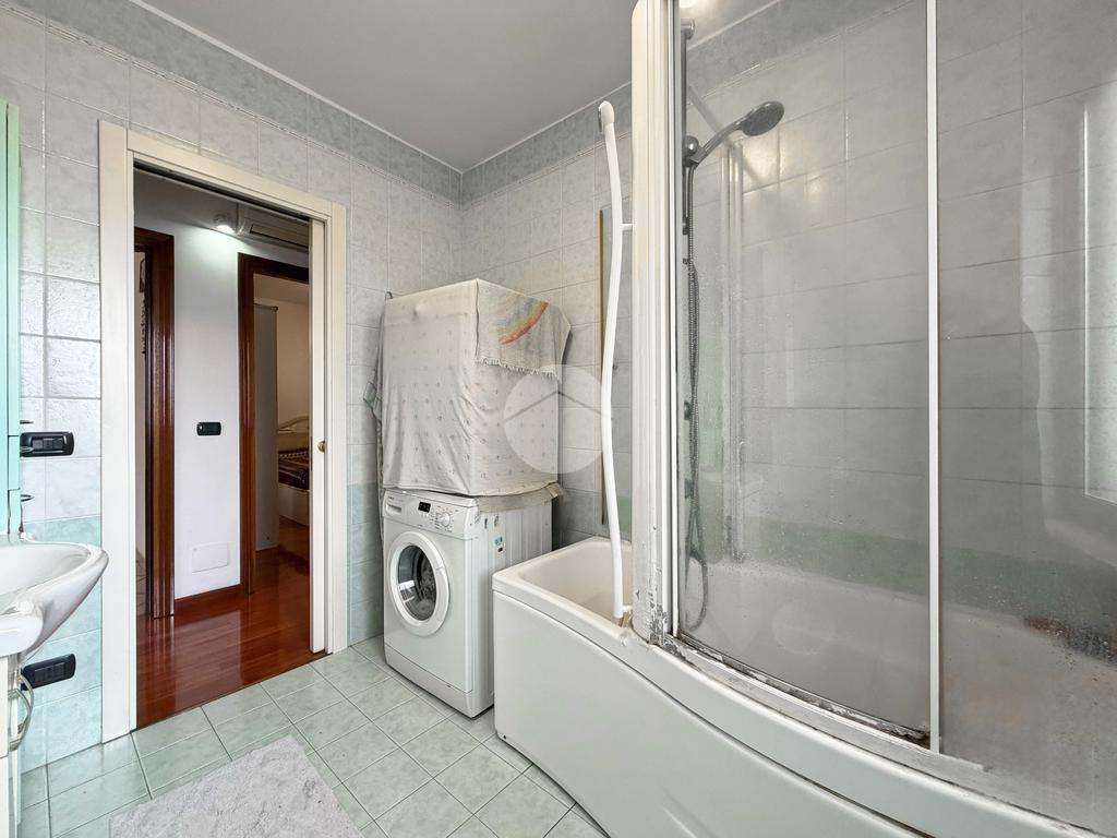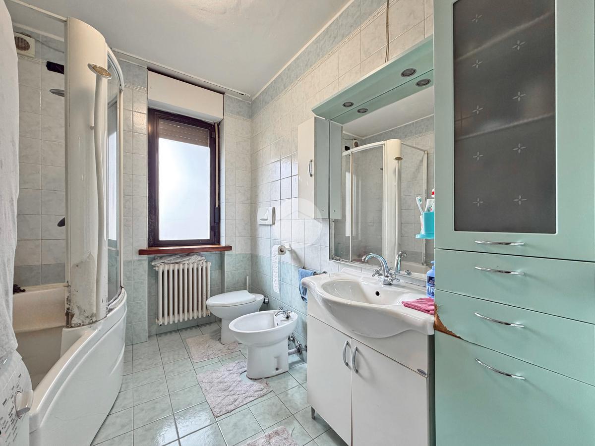 Il bagno dell'abitazione è finestrato e dotato di vasca, posizionato centralmente rispetto alle camere.