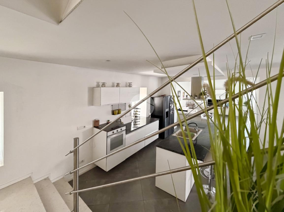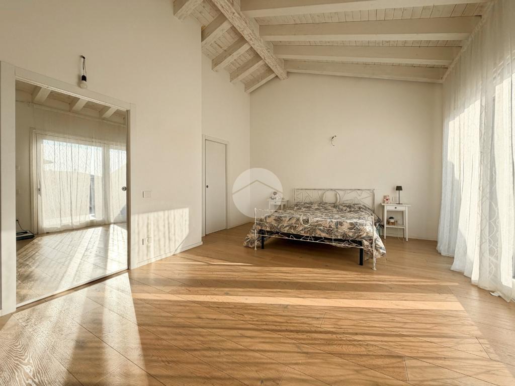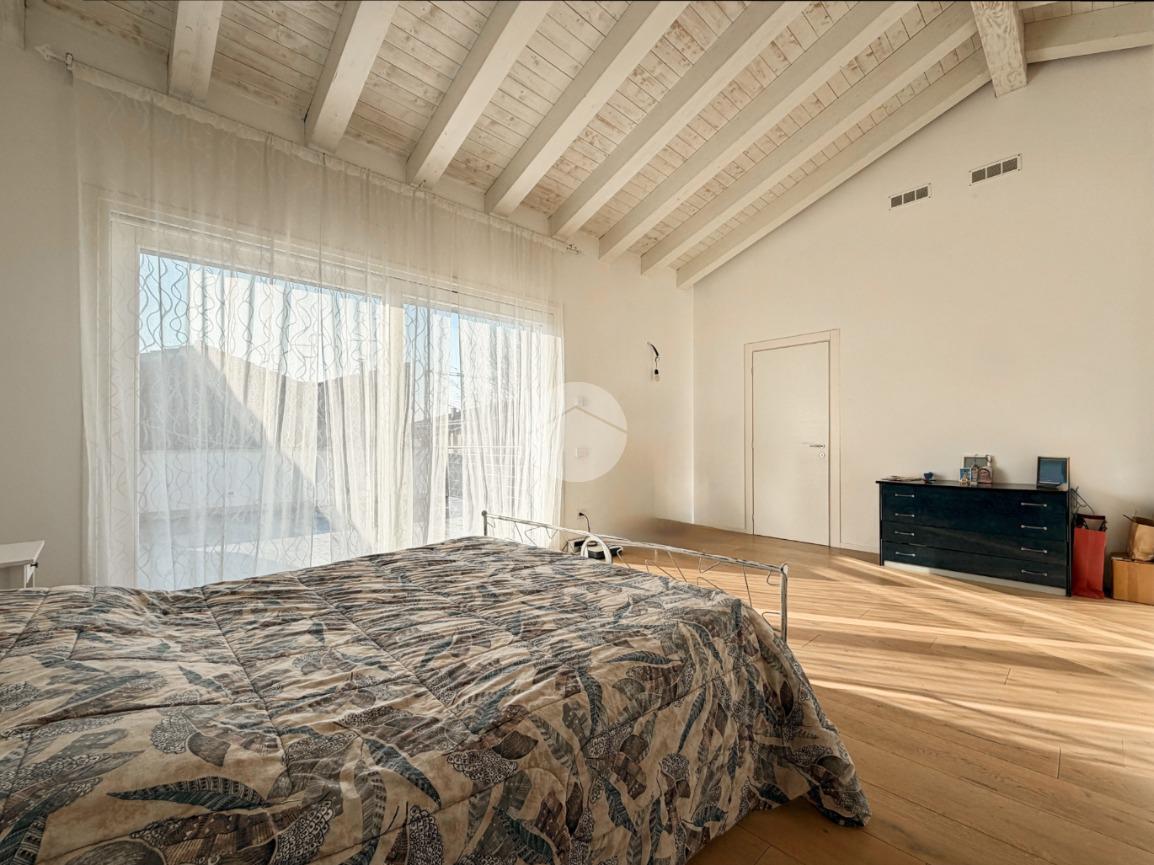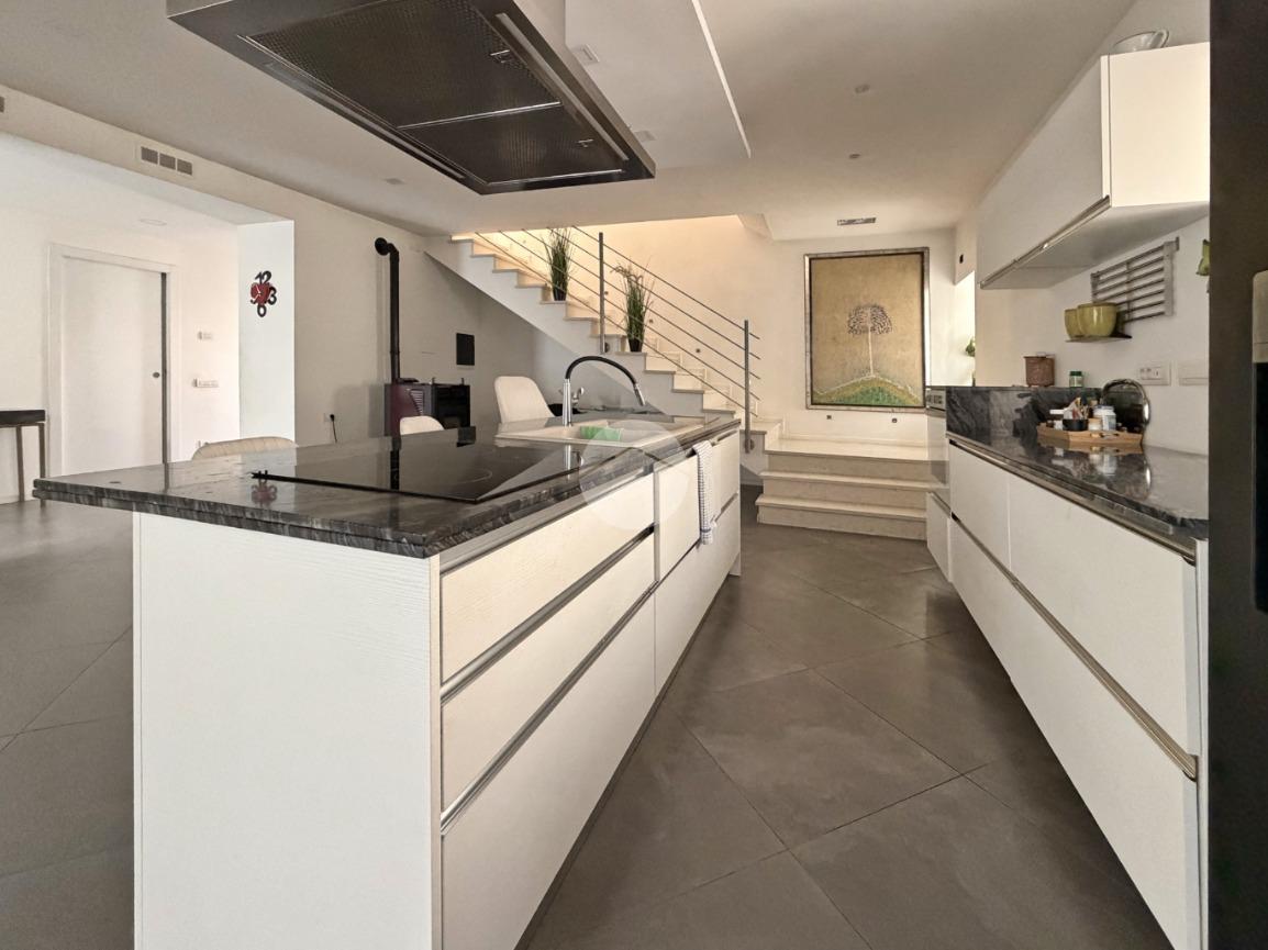 Il piano superiore ospita la zona notte principale, dove la suite padronale si arricchisce di un bagno privato, di una cabina armadio dedicata e da un accesso diretto a un grande terrazzo privato.
