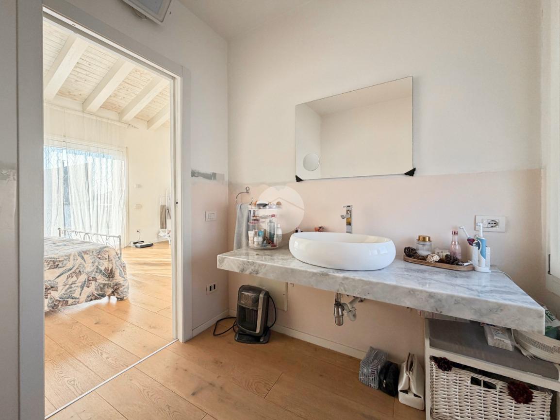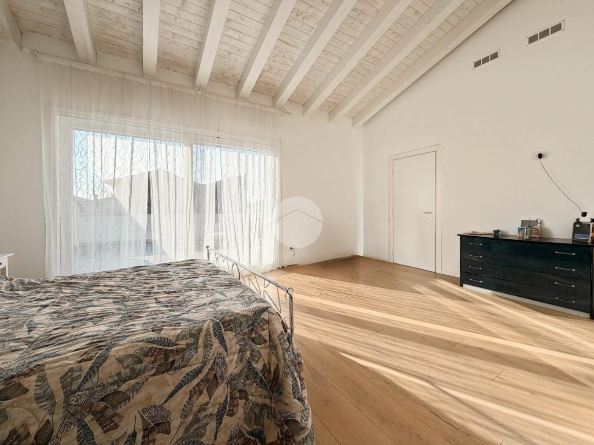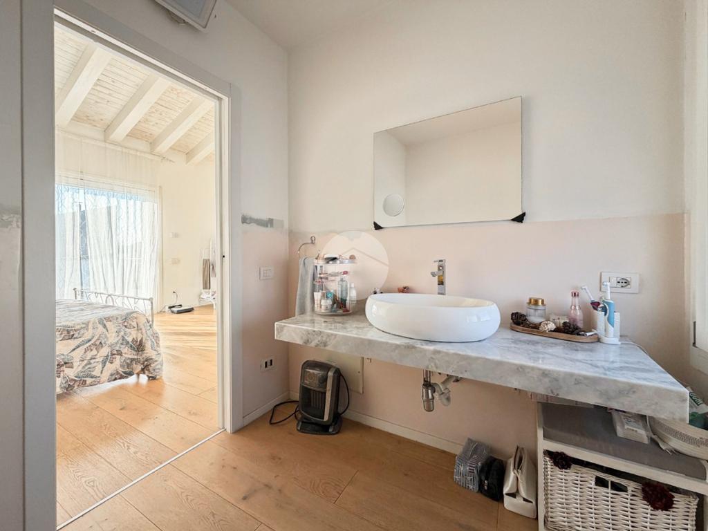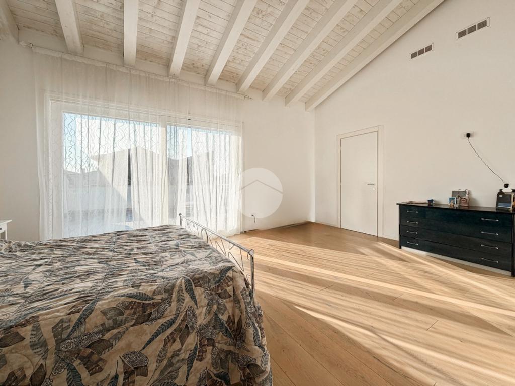 Il piano superiore ospita la zona notte principale, dove la suite padronale si arricchisce di un bagno privato, di una cabina armadio dedicata e da un accesso diretto a un grande terrazzo privato.